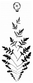 Goethe described leaf-metamorphosis in general terms of expansion and contraction. Jochen Bockemühl has described the leaf-forming activities in more detail, calling them "stemming" (forming stems), "spreading" (enlarging the surface), "articulating" or "differentiating" (differentiating the forms) and "pointing" (retiring of the leaves)[2] (Fig. 3, cf. The four elements as modes of cognition and the metamorphosis of plant leaves). This does not indicate the fixed forms of the leaves, but the actively forming principles. They must be comprehended and experienced in inner activity.